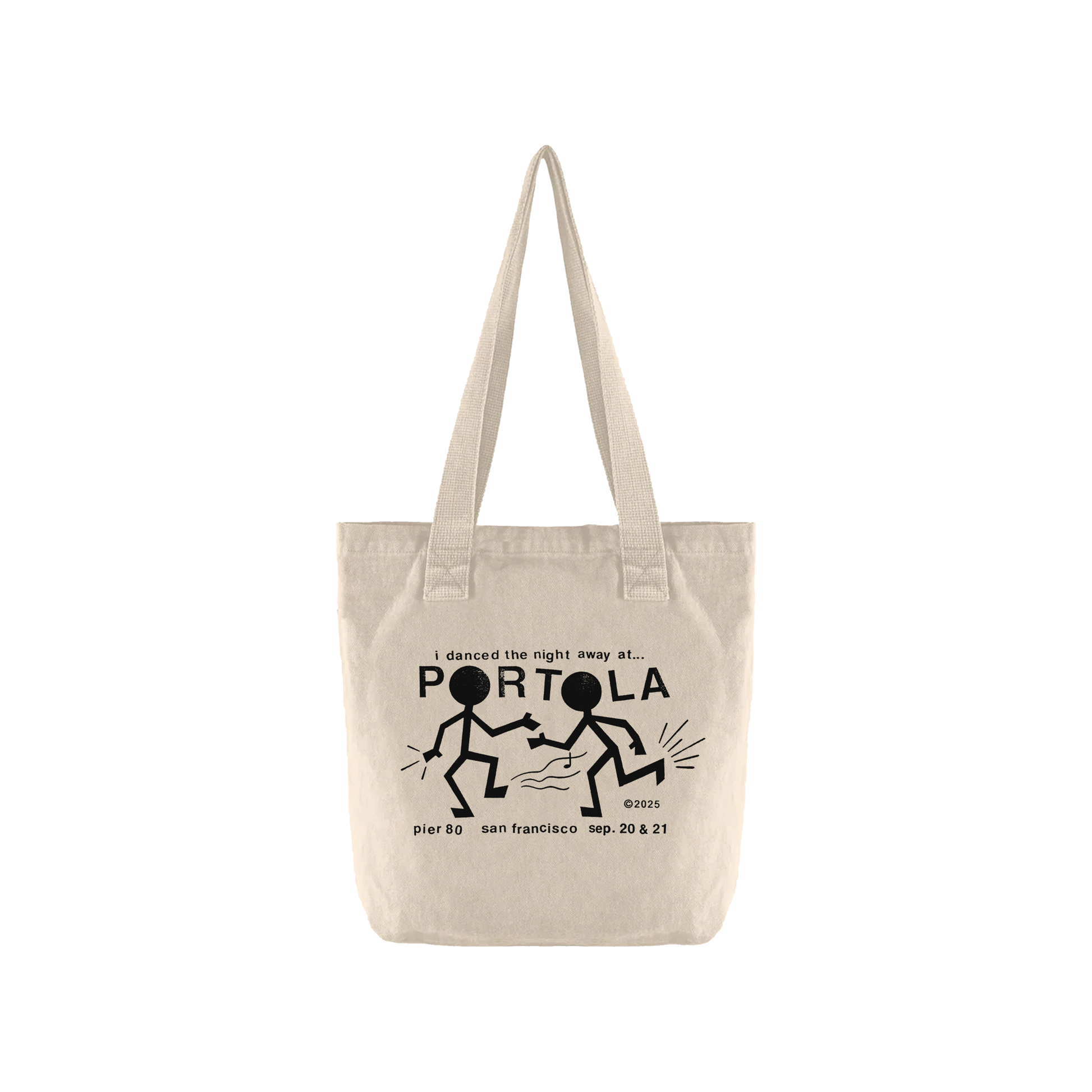 Heavyweight bull denim tote in natural, featuring Party People logo art printed on the front. 100% cotton canvas. 13.75" x 15" x 4" with 13" drop handles.