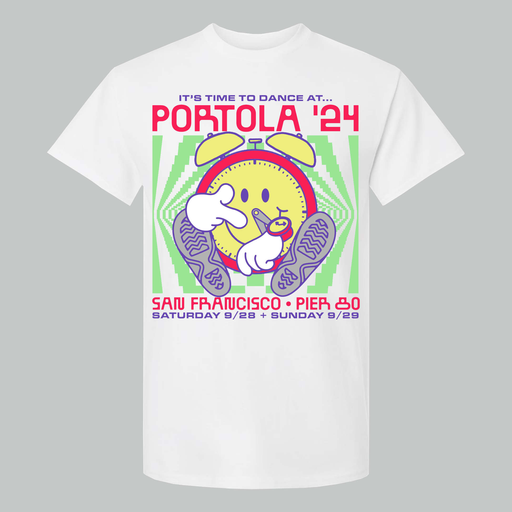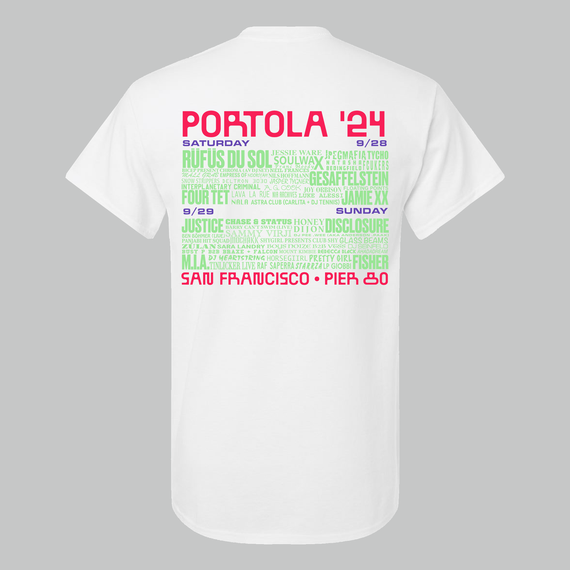 It's time to dance in this ultra soft heavyweight tee, featuring original artwork printed on the front and the 2024 lineup on the back. 100% cotton. Unisex fit.